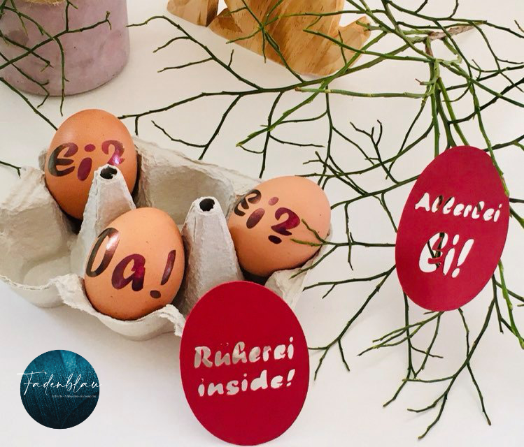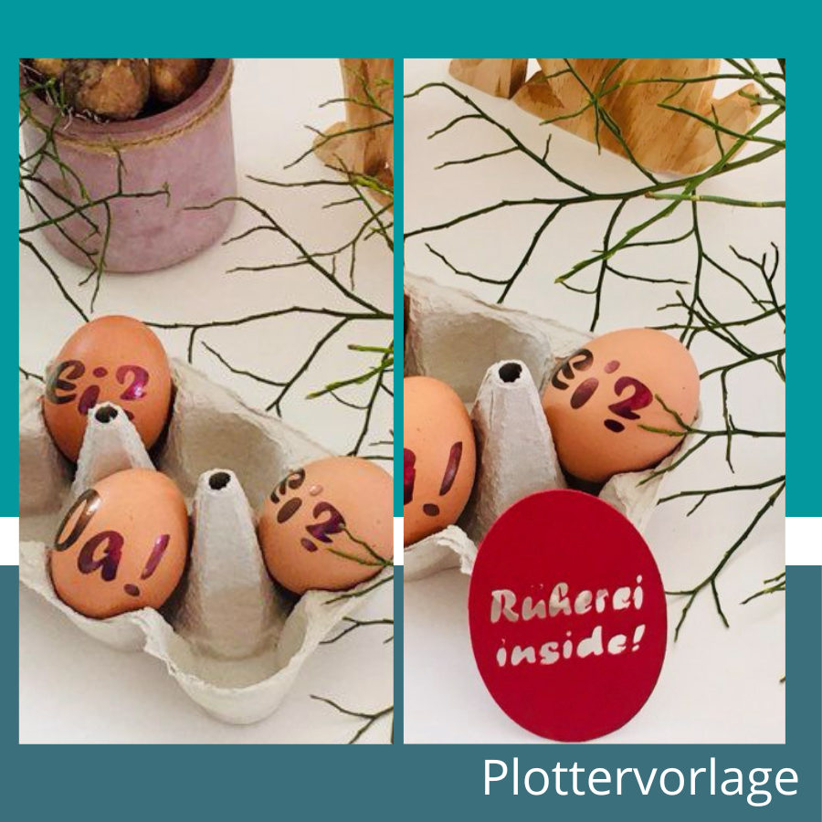 Ostern darf witzig sein! Mit der Plotterdatei „Rumgeeier!“ bringst du garantiert gute Laune auf Shirts, Osterkörbchen, Geschenkverpackungen oder direkt aufs Osterei!